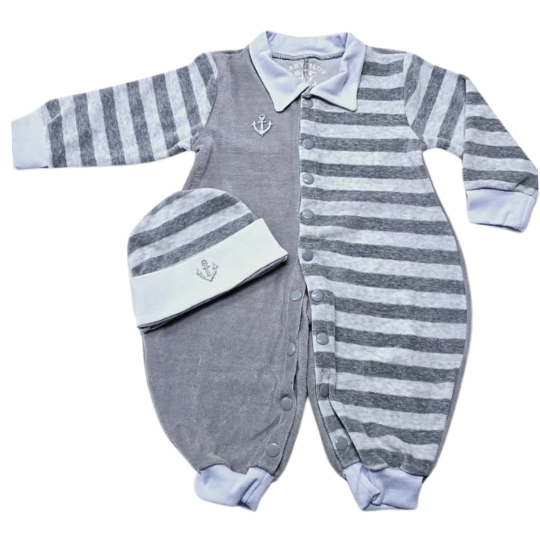 Macacão em Plush Cinza Listrado - Conforto e Maciez para os Pequenos